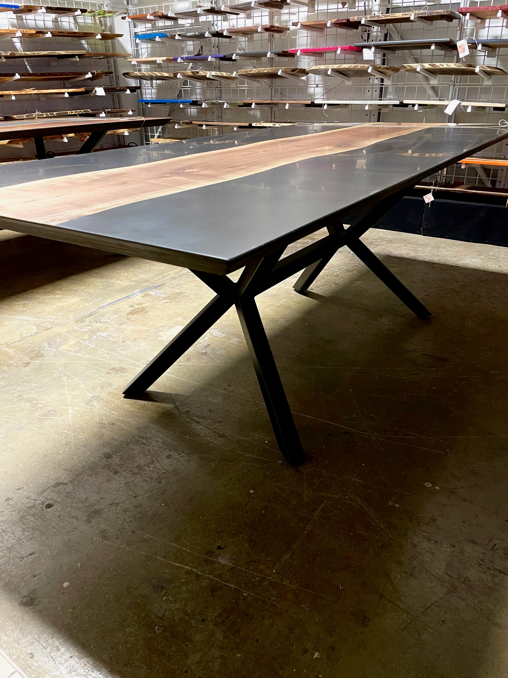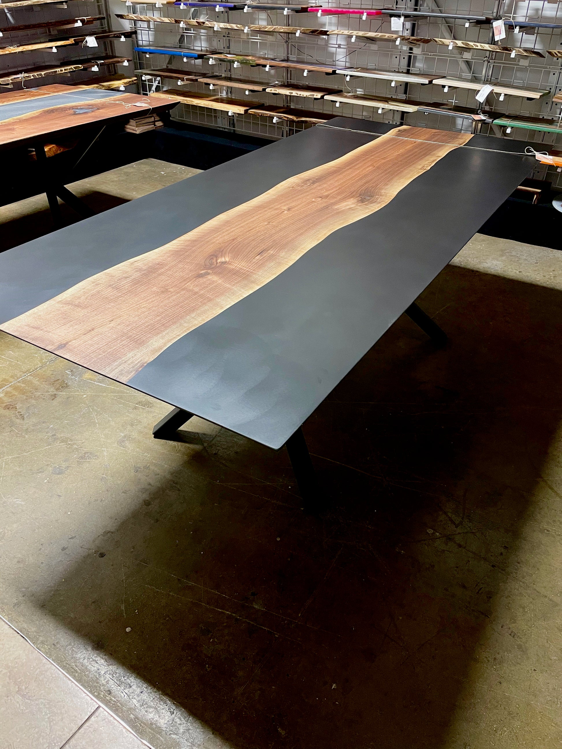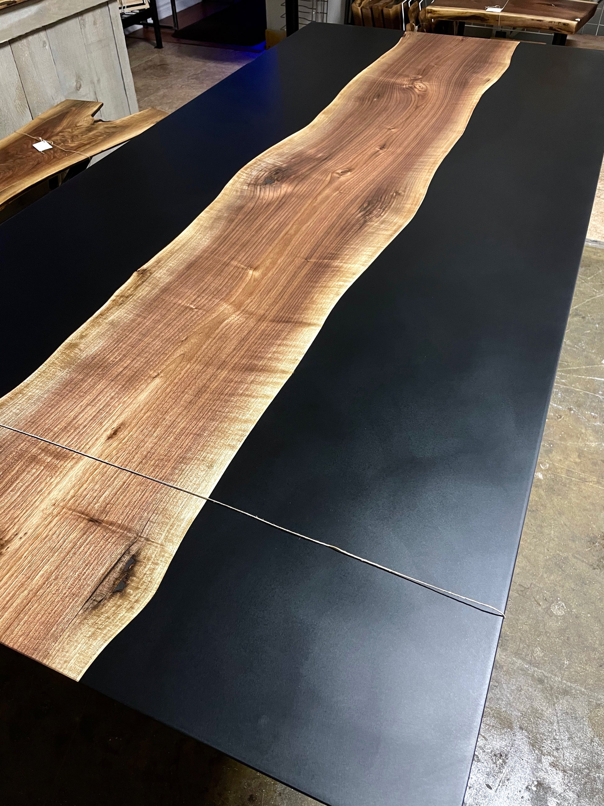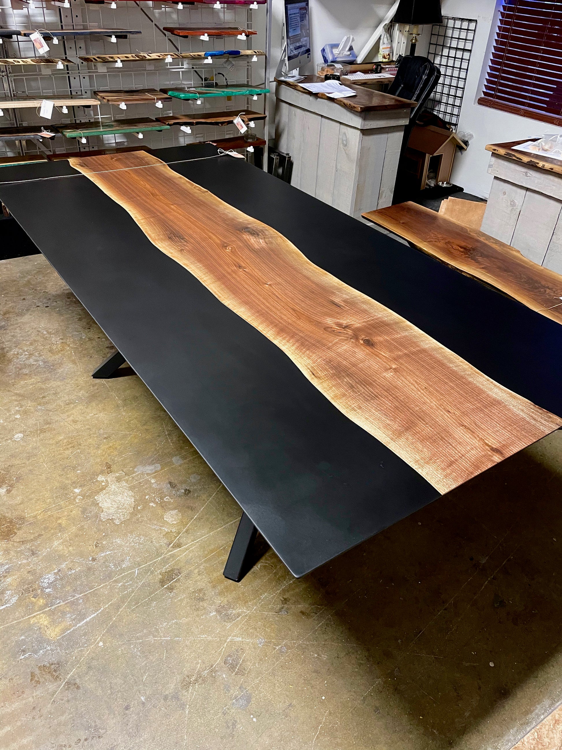 • Black e-poxy bridge design (wood in middle, e-poxy on sides)