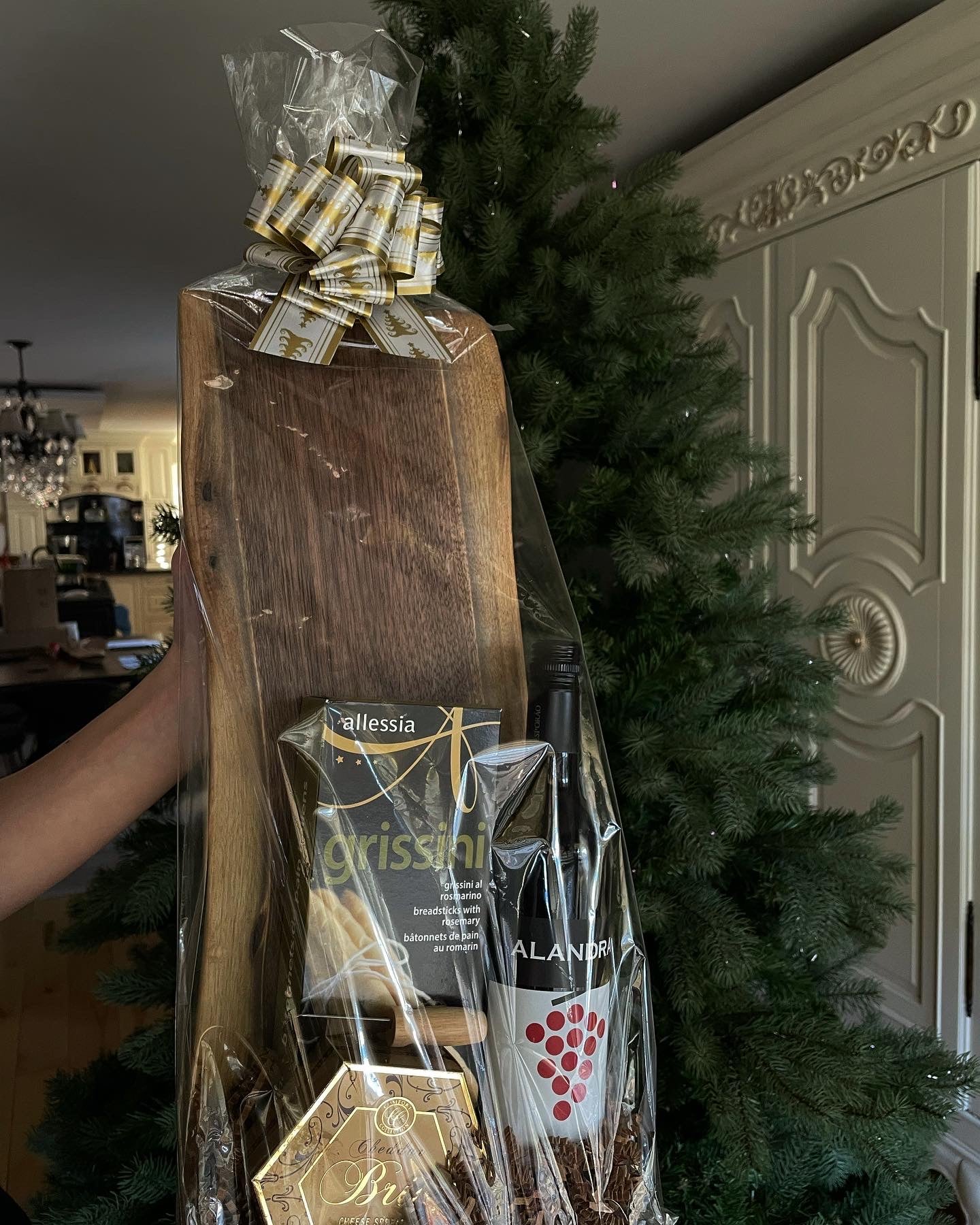 All of these goodies are packaged and beautifully wrapped up in cellophane with crinkle paper and tied with a festive Christmas bow.