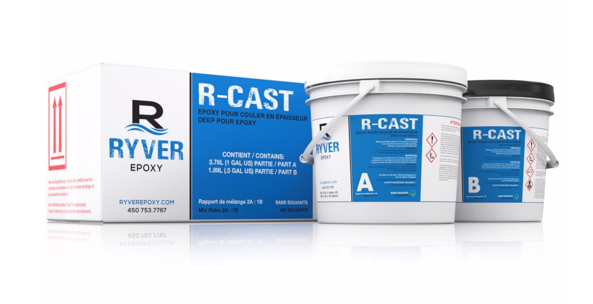 R-CAST is a clear epoxy resin specially designed to pour up to 2” (river projects, molding, turning and more).