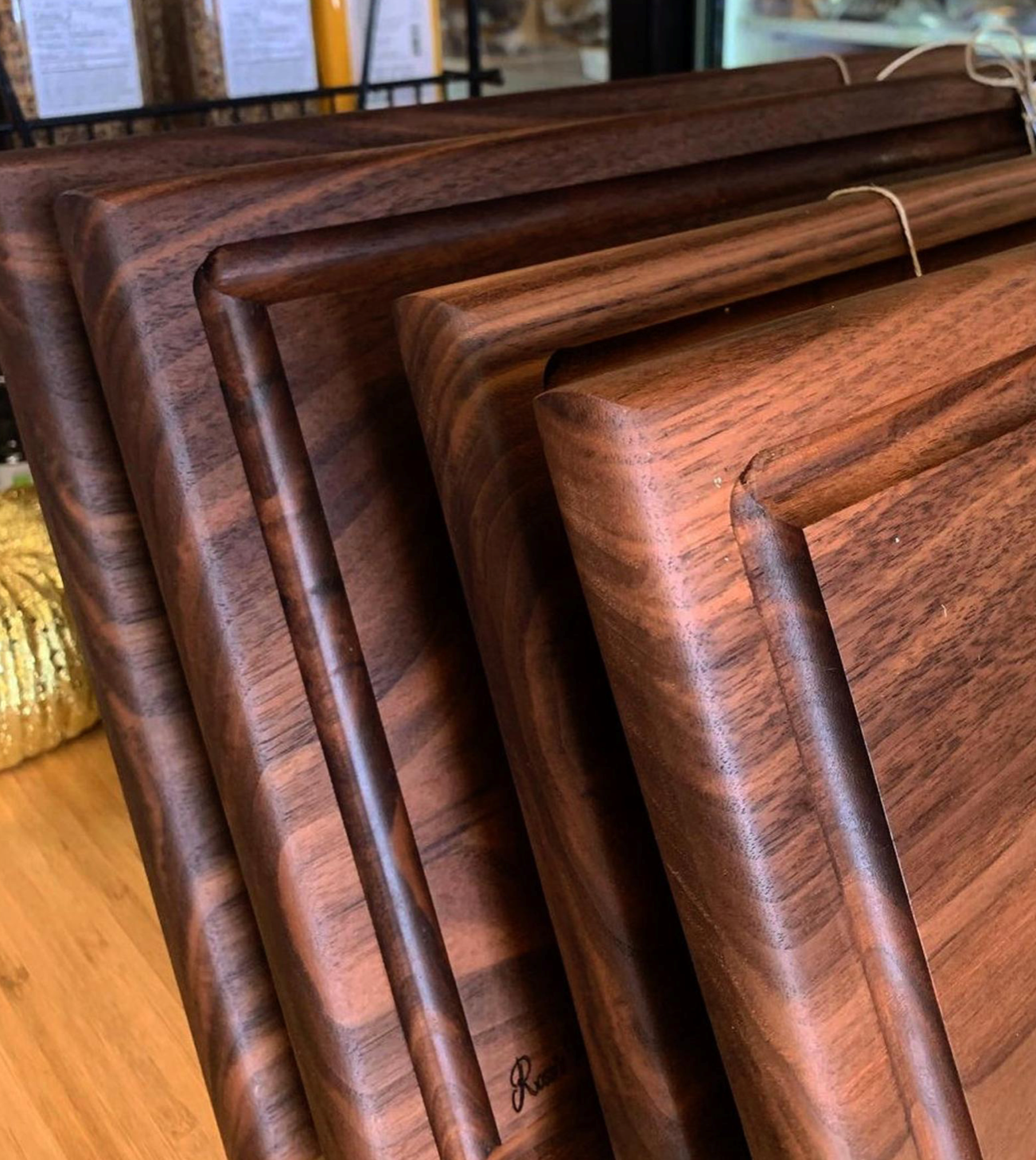 After sanding, apply a thin layer of Walrus Oil ® Cutting Board Oil. Follow instructions on bottle. For more water protection and shine, also apply a layer of Walrus Wood® Wax after oil has dried.